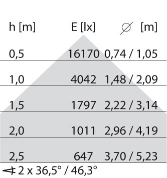 faible éblouissement selon EN 12464-1 (UGR Inf. à 19):
