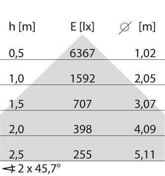 faible éblouissement selon EN 12464-1 (UGR Inf. à 19):