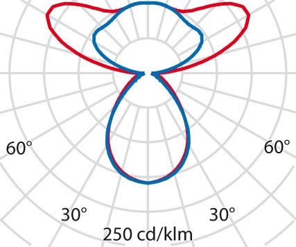 faible éblouissement selon EN 12464-1 (UGR Inf. à 19):