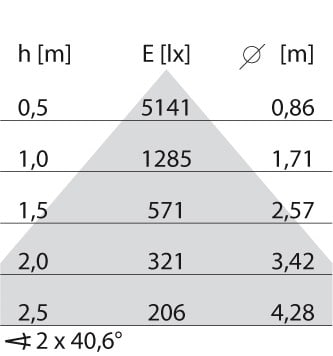 faible éblouissement selon EN 12464-1 (UGR Inf. à 19):