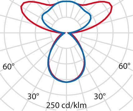 faible éblouissement selon EN 12464-1 (UGR Inf. à 19):