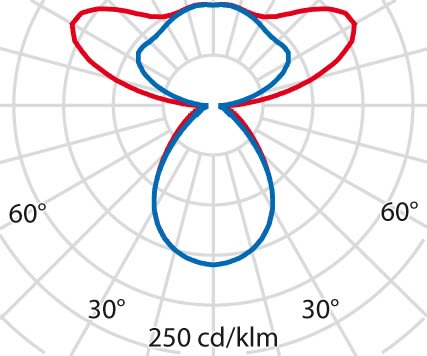 faible éblouissement selon EN 12464-1 (UGR Inf. à 19):