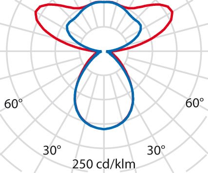 faible éblouissement selon EN 12464-1 (UGR Inf. à 19):