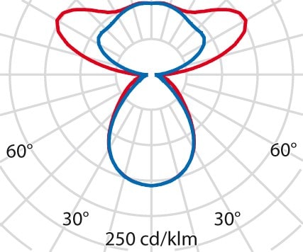faible éblouissement selon EN 12464-1 (UGR Inf. à 19):