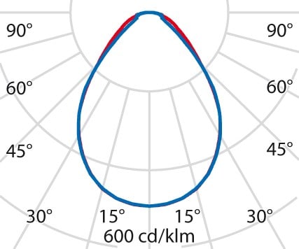 faible éblouissement selon EN 12464-1 (UGR Inf. à 19):