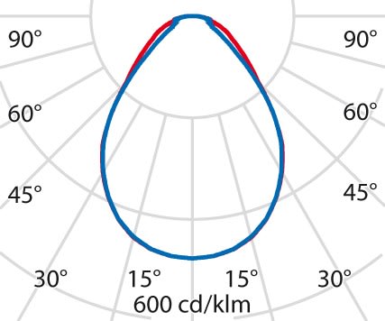 faible éblouissement selon EN 12464-1 (UGR Inf. à 19):
