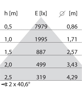 dépréciation flux lumineux, durée d'utilisation moyenne 35 000 h, temp.25 °C: