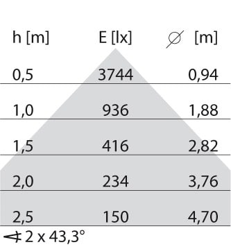 faible éblouissement selon EN 12464-1 (UGR Inf. à 19):