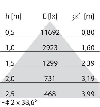 faible éblouissement selon EN 12464-1 (UGR Inf. à 19):