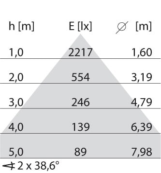 faible éblouissement selon EN 12464-1 (UGR Inf. à 19):