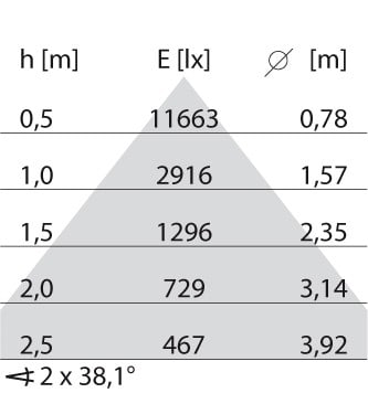 dépréciation flux lumineux, durée d'utilisation moyenne 35 000 h, temp.25 °C: