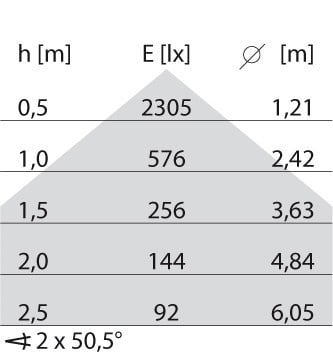 faible éblouissement selon EN 12464-1 (UGR Inf. à 19):