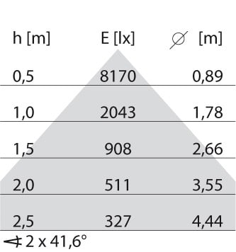 faible éblouissement selon EN 12464-1 (UGR Inf. à 19):