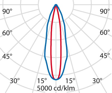 faible éblouissement selon EN 12464-1 (UGR Inf. à 19):