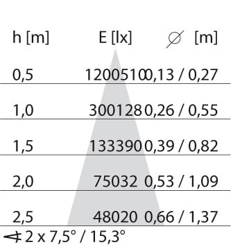 dépréciation flux lumineux, durée d'utilisation moyenne 35 000 h, temp.25 °C: