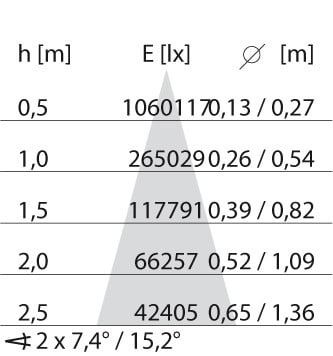 dépréciation flux lumineux, durée d'utilisation moyenne 35 000 h, temp.25 °C: