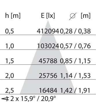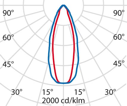 faible éblouissement selon EN 12464-1 (UGR Inf. à 19):
