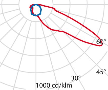 faible éblouissement selon EN 12464-1 (UGR Inf. à 19):