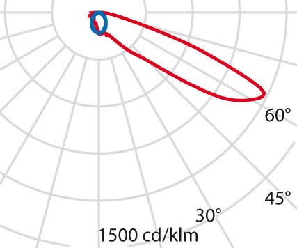 faible éblouissement selon EN 12464-1 (UGR Inf. à 19):