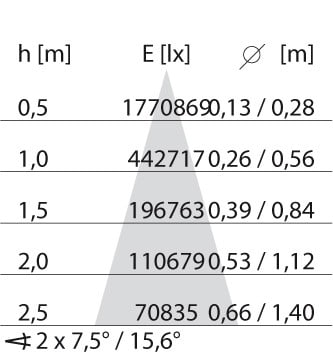 dépréciation flux lumineux, durée d'utilisation moyenne 35 000 h, temp.25 °C: