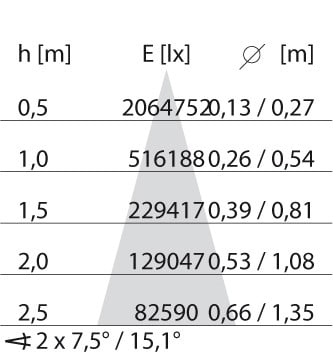 dépréciation flux lumineux, durée d'utilisation moyenne 35 000 h, temp.25 °C: