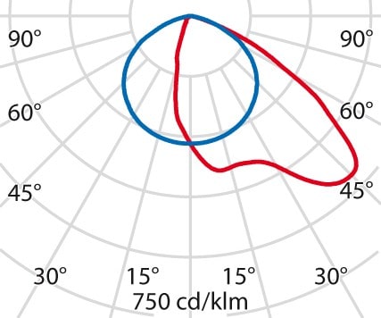 faible éblouissement selon EN 12464-1 (UGR Inf. à 19):