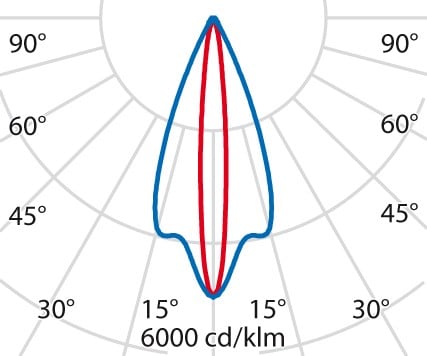faible éblouissement selon EN 12464-1 (UGR Inf. à 19):