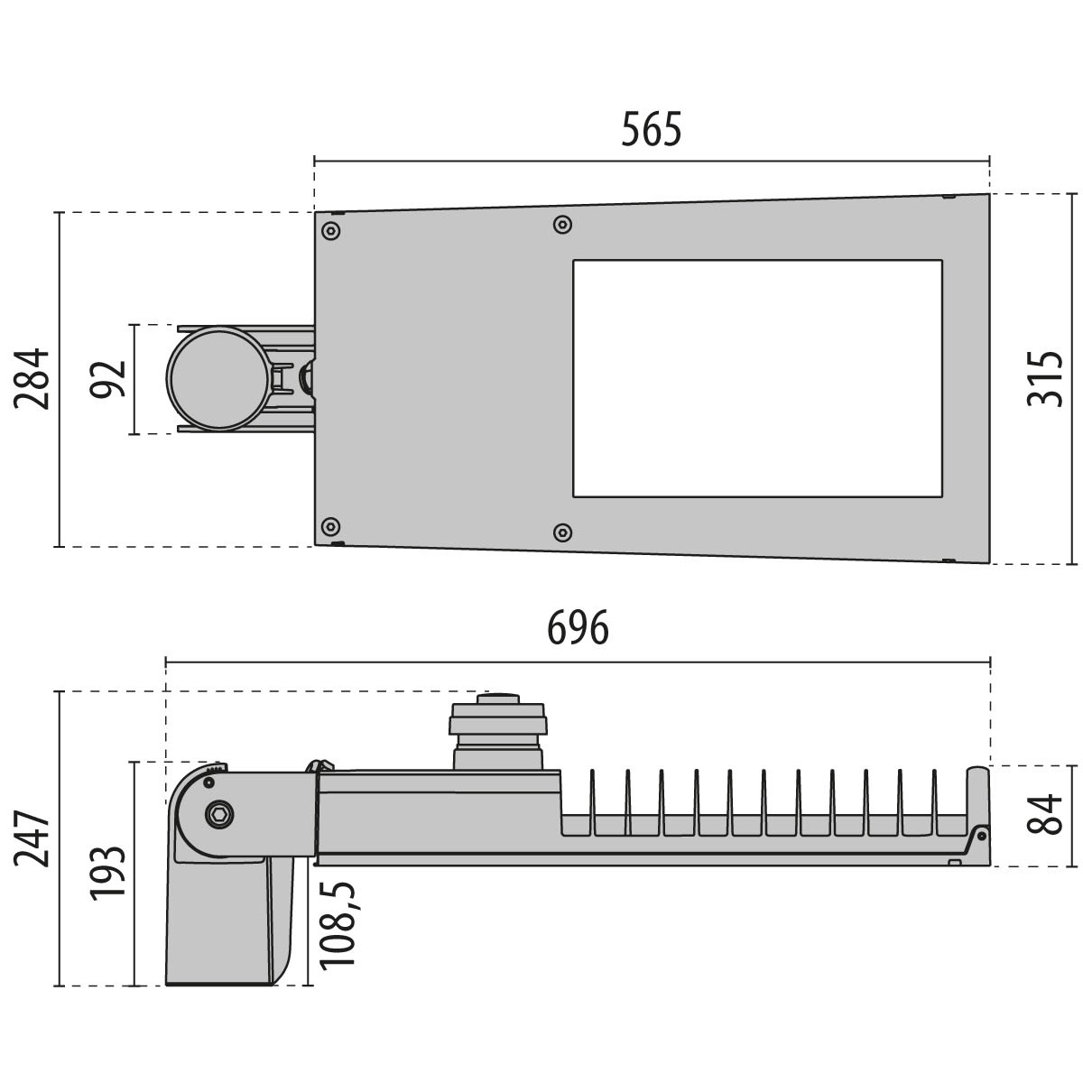 Lanterne d'éclairage public développée pour l'éclairage des routes mais aussi des allées, parkings et périphéries de bâtiments. Corps en aluminium moulé sous pression peint par poudre polyester après traitement de conversion chimique de la