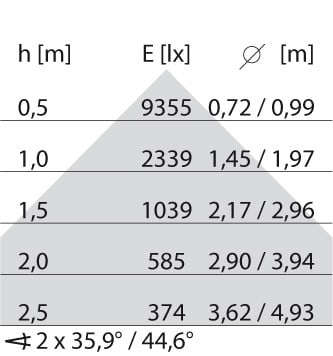 dépréciation flux lumineux, durée d'utilisation moyenne 35 000 h, temp.25 °C: