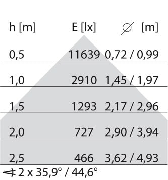 dépréciation flux lumineux, durée d'utilisation moyenne 35 000 h, temp.25 °C: