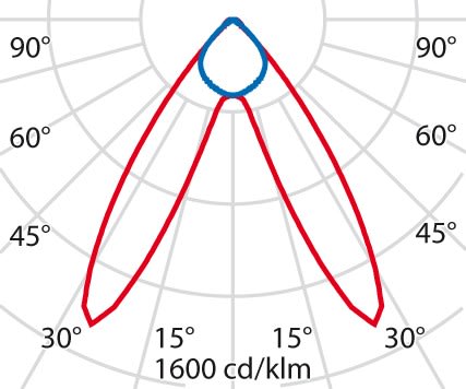 faible éblouissement selon EN 12464-1 (UGR Inf. à 19):