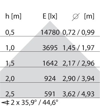 dépréciation flux lumineux, durée d'utilisation moyenne 35 000 h, temp.25 °C: