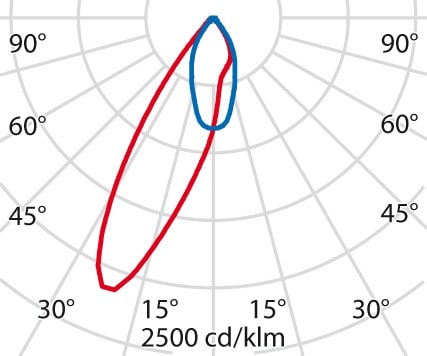 faible éblouissement selon EN 12464-1 (UGR Inf. à 19):