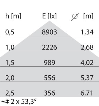 faible éblouissement selon EN 12464-1 (UGR Inf. à 19):