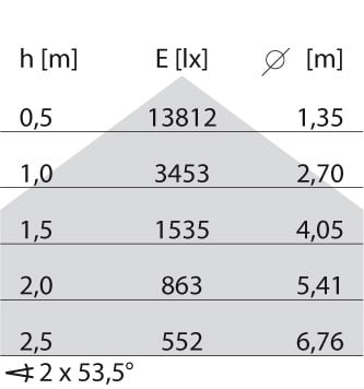 dépréciation flux lumineux, durée d'utilisation moyenne 35 000 h, temp.25 °C: