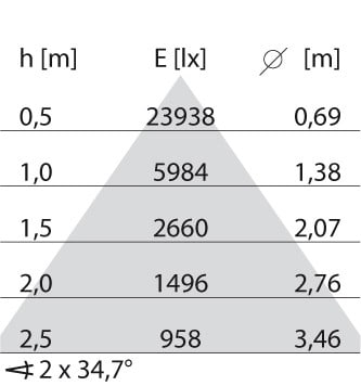 dépréciation flux lumineux, durée d'utilisation moyenne 35 000 h, temp.25 °C: