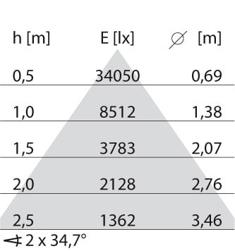 dépréciation flux lumineux, durée d'utilisation moyenne 35 000 h, temp.25 °C: