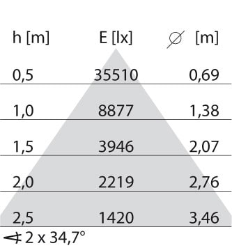 dépréciation flux lumineux, durée d'utilisation moyenne 35 000 h, temp.25 °C: