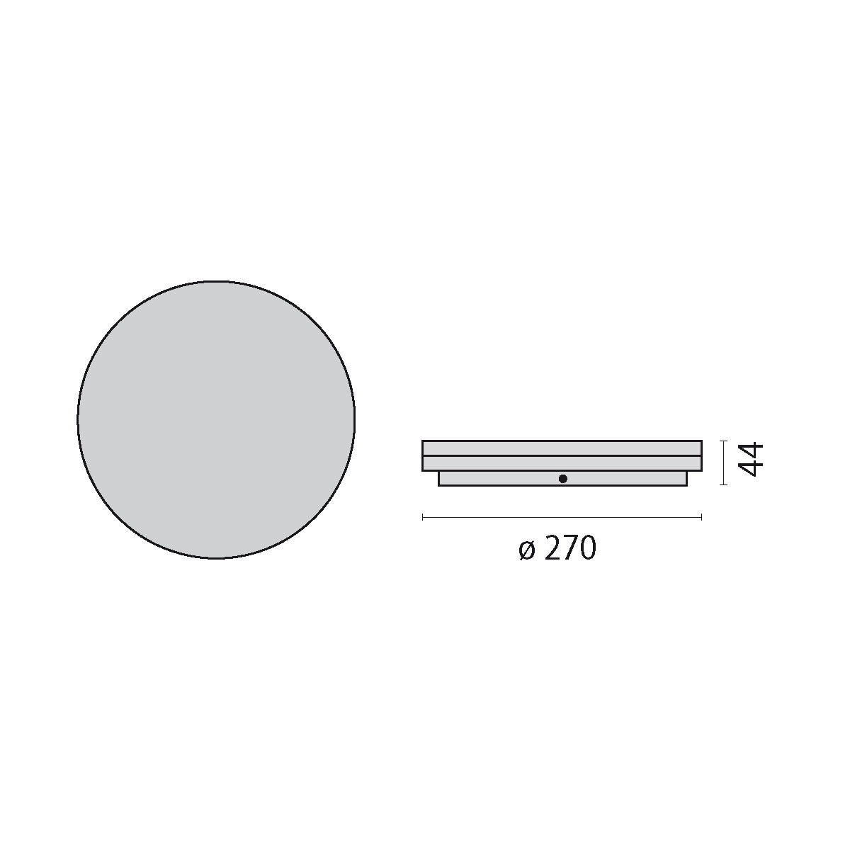 WL270 WLC applique intérieure ronde 24/18W S/A 830/40 Gris, fermeture opale. Tolérance des couleurs selon MacAdam ≤3 SDCM, L80B10@50000h, avec couleur de lumière réglable entre 3000K ou 4000K. Deux niveaux d’intensité adaptables par commuta
