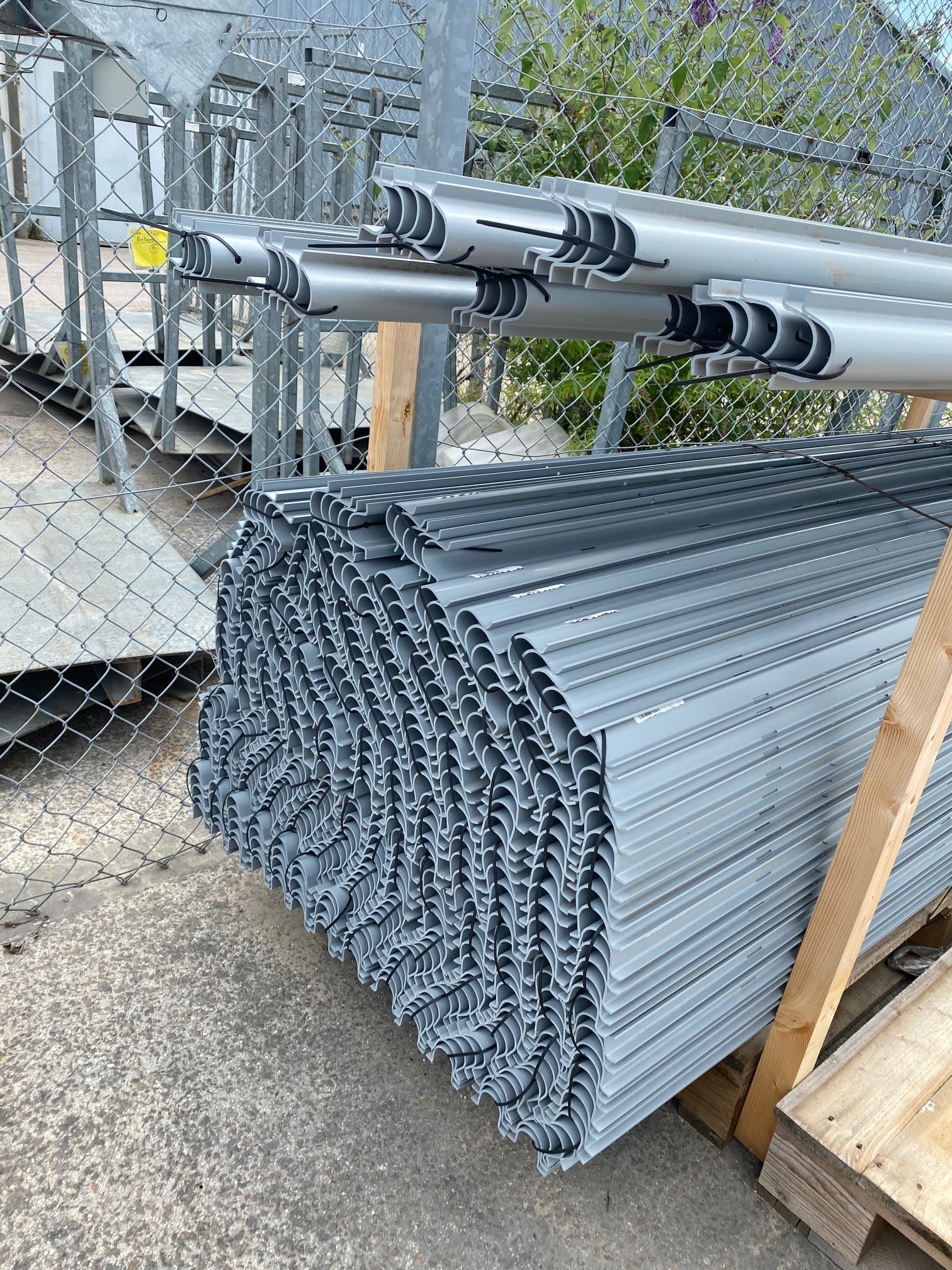 Gaines de protection de câbles en PVC couleur gris, diamètre 60mm, longueur 2750mm.