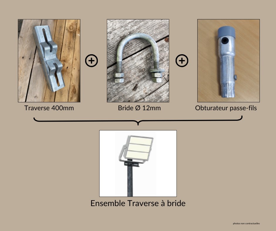 Equipement top de mât - éclairage fixe Traverses à bride Finition acier galvanisé