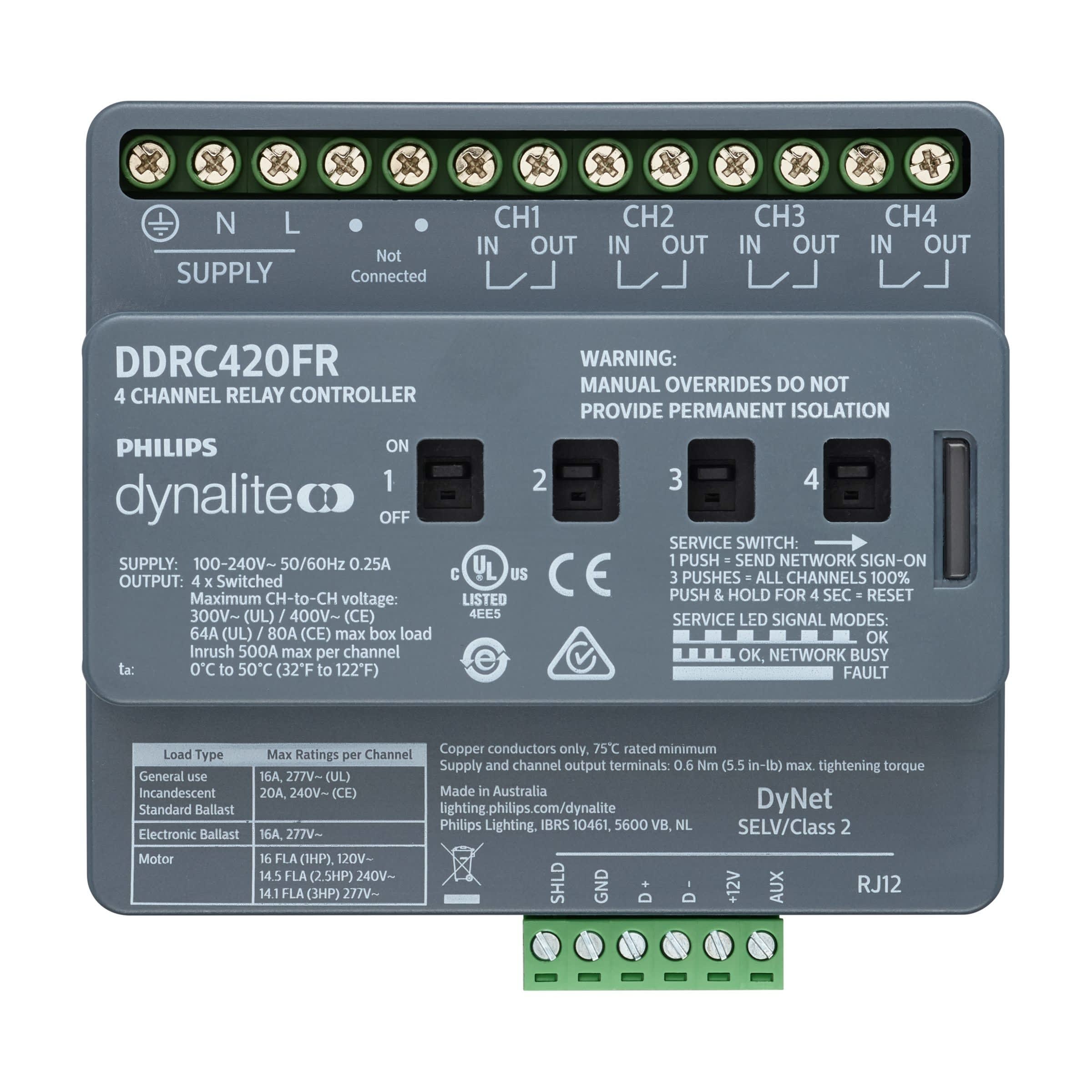 Nous accélérons l’extraordinaire potentiel de la lumière pour des vies plus agréables et un monde meilleur. Étant une des formes les plus utilisées de commande d’éclairage, les contrôleurs à relais peuvent avoir un impact maximal sur la gestion de l’énergie et la commande d’éclairage. La solution Dynalite est compatible avec un vaste choix de contrôleurs à relais, proposés en version pour rail DIN et boîtier mural, avec différents nombres de circuits et des tailles diverses, qui peuvent fonctionner individuellement ou intégrés à un système pour répondre aux besoins de tous les projets. Chaque contrôleur peut mémoriser plus de 170 programmes, permettant de rappeler une logique de commutation complexe à partir de messages réseau simples. Les scénarios prédéfinis nécessaires étant mémorisés dans chaque contrôleur à relais, le processus de mise en service et les messages réseau sont simplifiés.