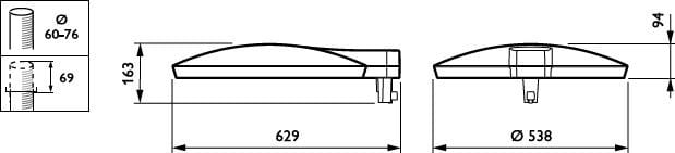 Urban road & street light, Aluminium, Gris, Top de mât pour diamètre 60 mm, Bloc d'alimentation avec interface DALI, 5100 lm, 46.5 W, 110 lm/W, 3000 K, (0.43, 0.40) SDCM 5, CRI80, Distribution semi-intensive 50, IP66 | Protection contre la pénétration de poussière, protection contre les jets d’eau, IK08 | 5 J protection contre le vandalisme, Classe de sécurité II, Protection contre les surtensions en mode différentiel jusque 10 kV et en mode commun jusque 10 kV, Connecteurs à visser