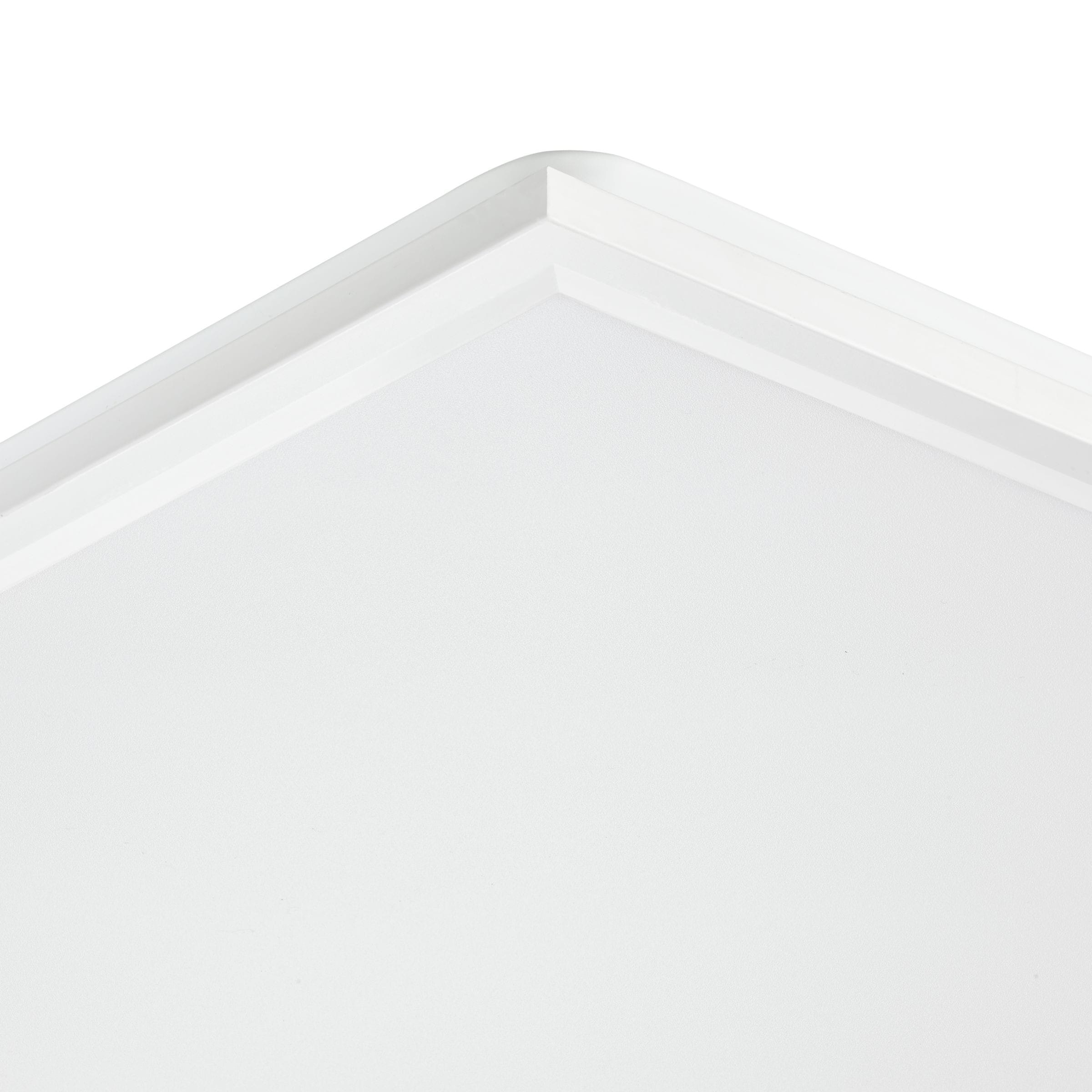 600x600 mm, Visible profile ceiling version, Acier, Blanc, Blanc de sécurité (RAL9003), Bloc d'alimentation externe (Marche/Arrêt), 3600 lm, 26 W, 140 lm/W, 4000 K, (0.38, 0.38) SDCM ?3, Angle d’ouverture de faisceau 120°, Opale, Polystyrène, IP20/44 | Protection des doigts, protection des fils, protection contre les éclaboussures, IK03 | 0,3 J, Classe de sécurité II, Connecteur à poussoir 2 pôles, SC | Câble de sécurité, Compatible éclairage de secours (via un accessoire de kit de batterie compatible)