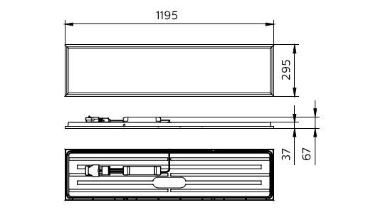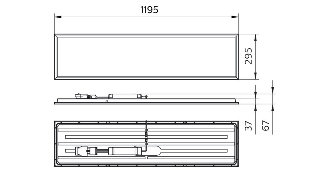 1200x300 mm, Acier, Blanc, Blanc de sécurité (RAL9003), Bloc d'alimentation avec interface DALI, 3600 lm, 28.5 W, 125 lm/W, 4000 K, (0.38, 0.38) SDCM≤3, UGR19, Angle d’ouverture de faisceau 90°, Lentille microprismatique, Acrylate, Protection des doigts, protection des fils, protection contre les éclaboussures, 0,3 J, Classe de sécurité II, Connecteur à poussoir 5 pôles