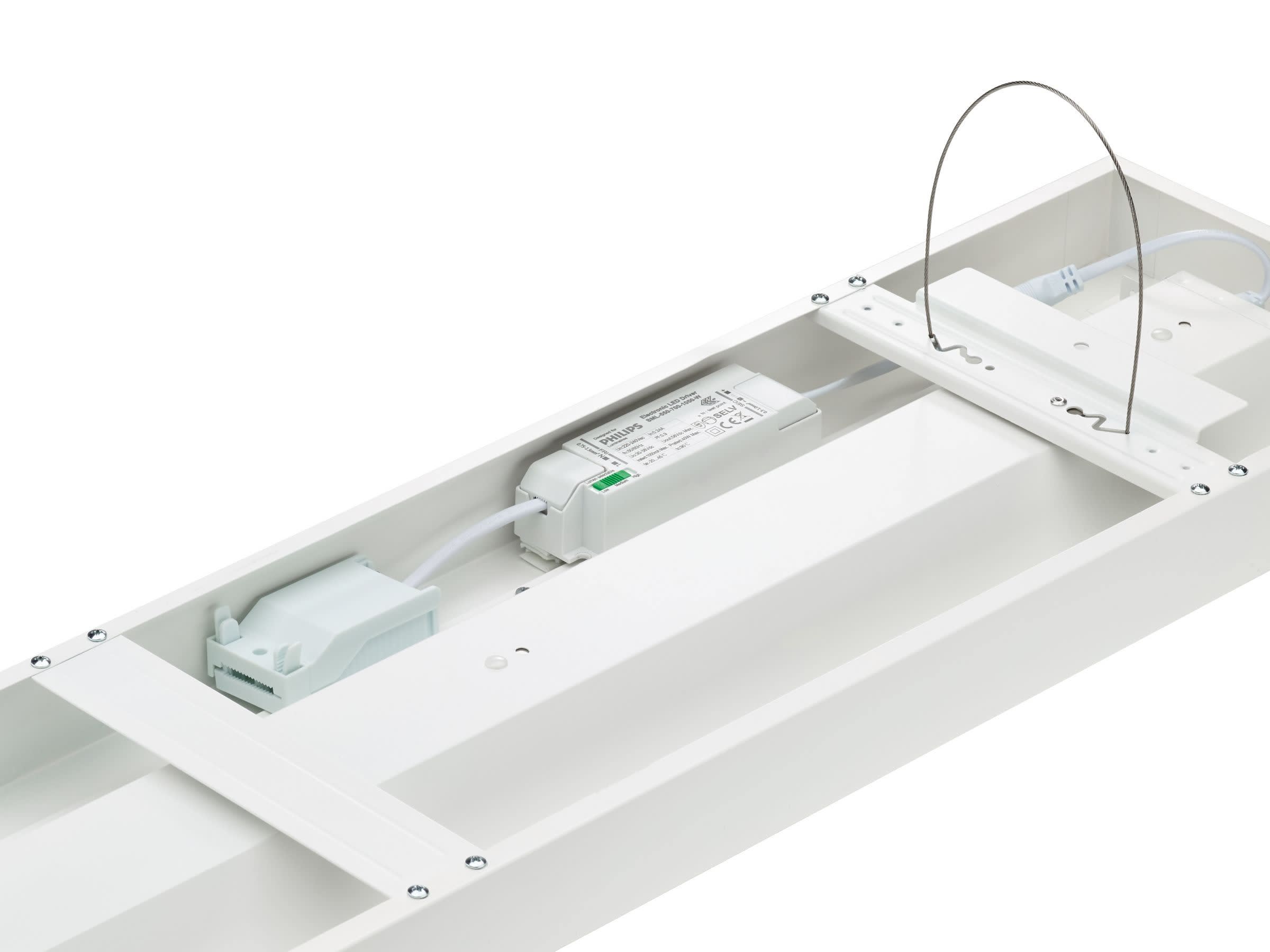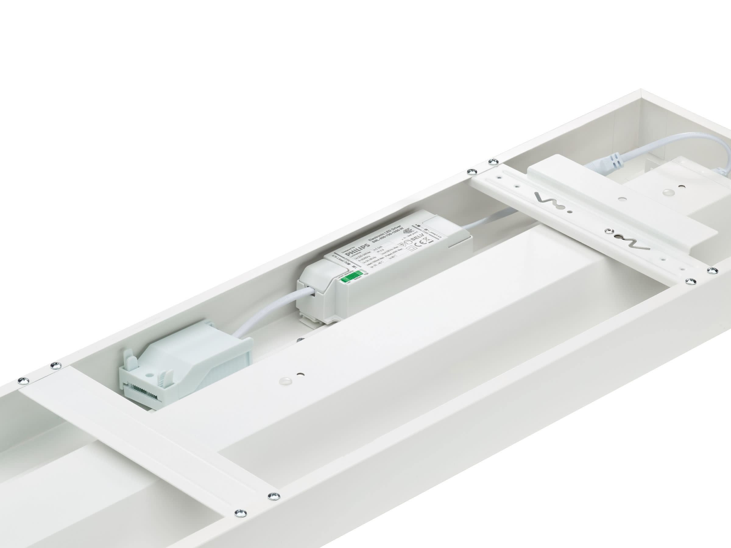 200x1200 mm, Acier, Blanc RAL 9003, Blanc de sécurité (RAL9003), Plafonnier, Bloc d’alimentation électrique (Marche/Arrêt), All-in, Multi Lumen, 3600 lm, 4500 lm, 6000 lm, 38.5 W, 23 W, 157 lm/W, 155 lm/W, 4000 K, (0.38.0.38)SDCM3, CRI≥80, Faisceau ultra-extensif, Dépoli, Polycarbonate, IP20/44 | Protection des doigts, protection des fils, protection contre les éclaboussures, IK03 | 0,35 J renforcé, Classe de sécurité II, Câble avec connecteur 3 pôles, Connecteur à poussoir 3 pôles