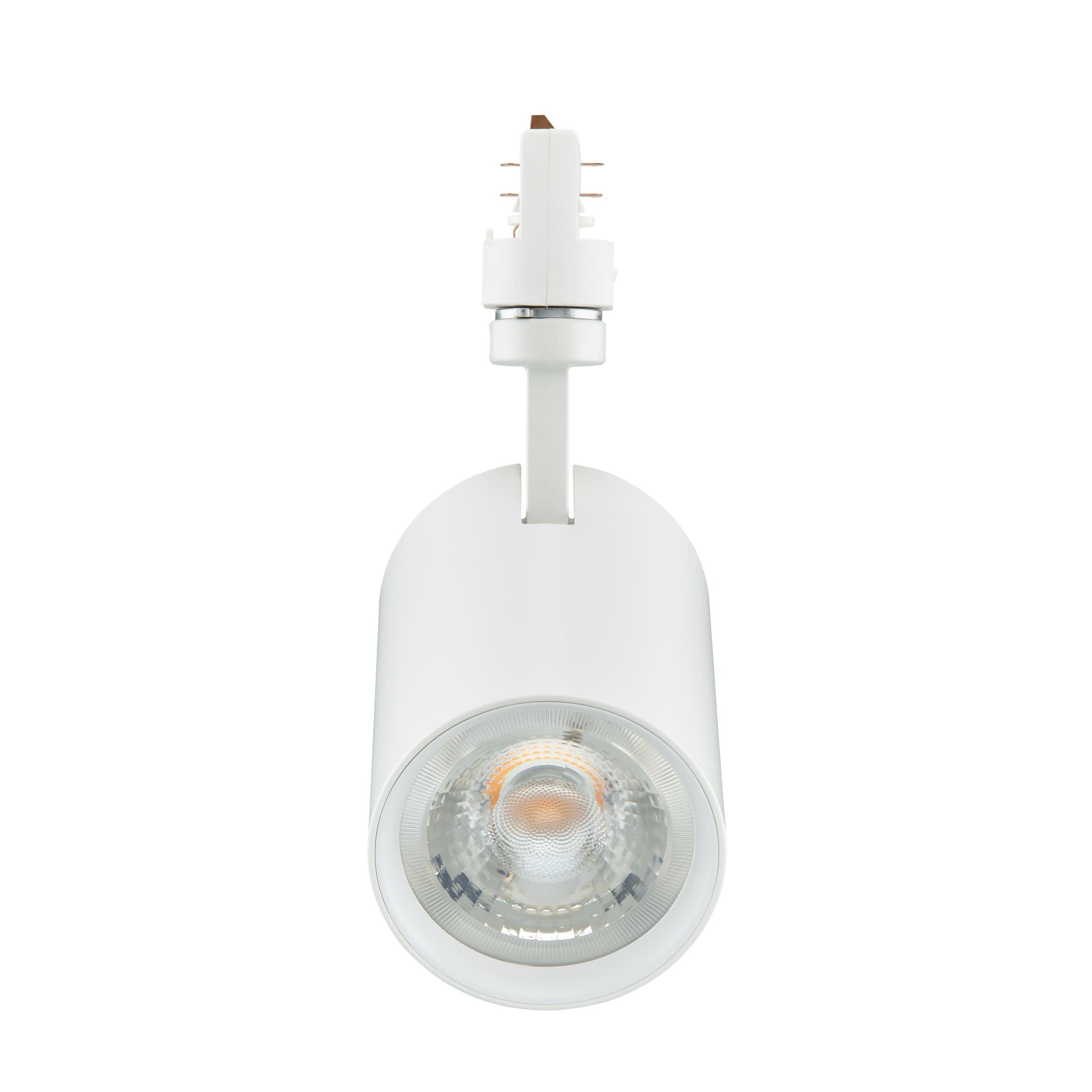 Track-mounted, D80 mm, Aluminium, Blanc, Bloc d’alimentation électrique (Marche/Arrêt), 3000 lm, 27 W, 110 lm/W, 4000 K, (0.3837, 0.3828) SDCM 4, CRI90, Faisceau extensif, Polycarbonate, IP20 | Protection des doigts, IK03 | 0,3 J, Classe électrique I, Rail 3C