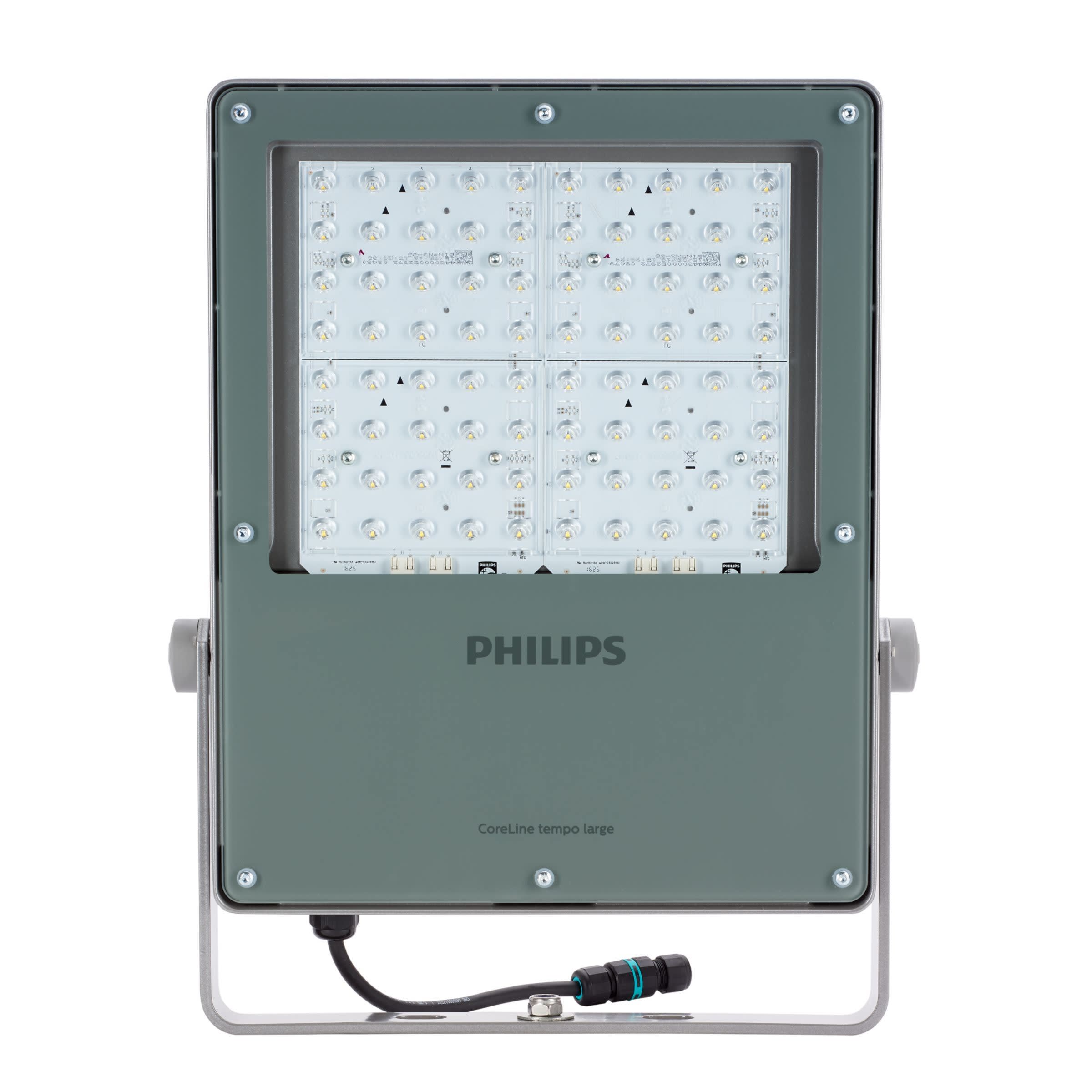 Nous accélérons l’extraordinaire potentiel de la lumière pour des vies plus agréables et un monde meilleur. CoreLine Tempo Large tient la promesse de la famille CoreLine avec des projecteurs innovants, faciles à utiliser et de haute qualité. La gamme limitée d’options permet de trouver facilement la meilleure solution de remplacement « lux par lux » des les lampes à décharge de 150 W, 250 W et 400 W. Le projecteur CoreLine Tempo Large propose des flux lumineux pour couvrir de nombreux domaines d’application ainsi qu’un choix d’optiques asymétriques et symétriques hautes performances. L’installation est facilitée grâce à la lyre de montage universel en U et au connecteur rapide externe à 3 pôles. C’est une solution idéale pour les espaces extérieurs, pour les zones industrielles/commerciales, les parkings, etc...