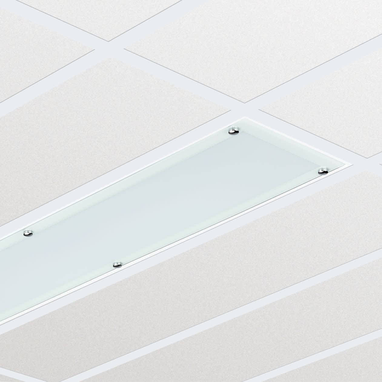 1200x300 mm, Acier, Blanc, Bloc d'alimentation avec interface DALI, 5500 lm, 63 W, 87 lm/W, 4000 K, (0.38, 0.38) SDCM 3, Opale, Verre trempé, IP65 | Protection contre la pénétration de poussière, protection contre les jets d’eau, IK07 | 2 J renforcé, Classe de sécurité II, Connecteur à visser