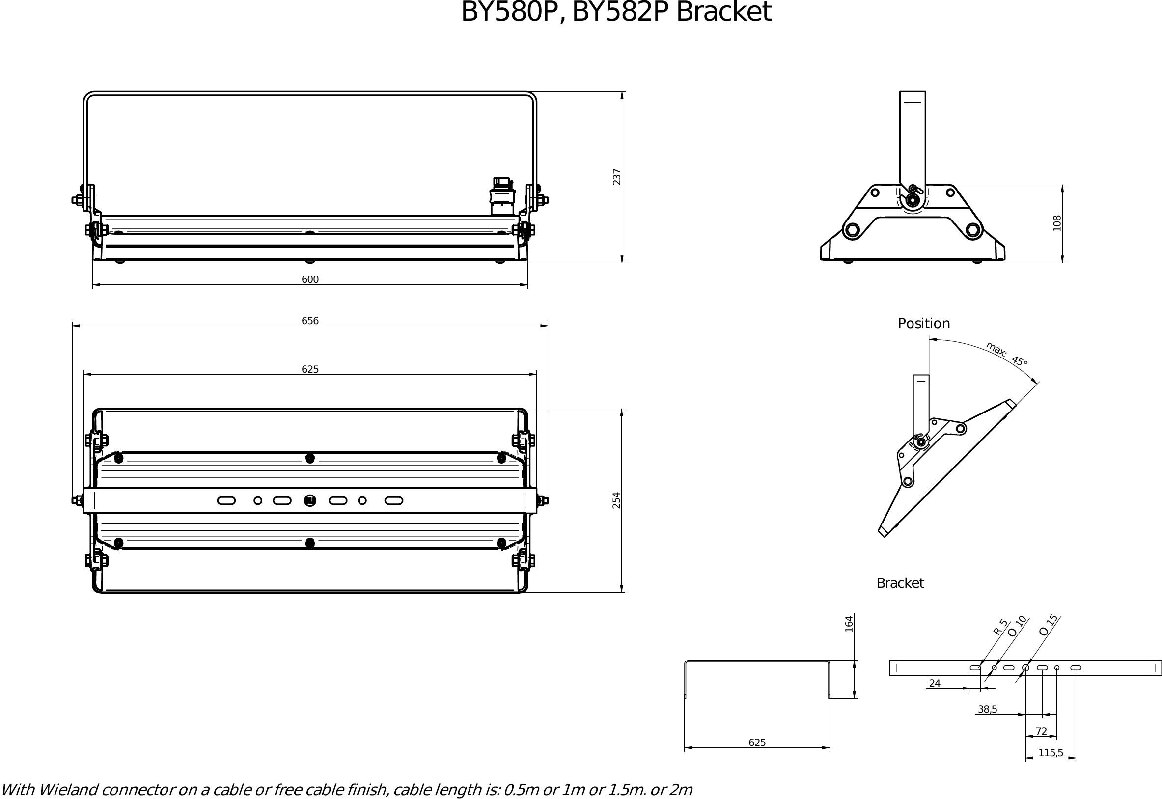 Aluminium, Argent, Poudrage double couche, Système Interact Ready de gradation Dali, 17000 lm, 102 W, 167 lm/W, 4000 K, (0.383, 0.377) SDCM 3, Symétrique, Transparent, Verre, IP65 | Protection contre la pénétration de poussière, protection contre les jets d’eau, IK07 | 2 J renforcé, Classe électrique I, Connecteur enfichable compatible Wieland/Adels 5 pôles
